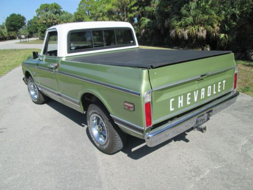 Power Steering, power brakes, AM/FM/CD New Tires, 8" Truck Rally Wheels. Wood Bed in great shape. Cab in great shape. Paint and body are in great shape for the year, some minor flaws, chips, dings, etc. Has a 350 small block with a nice cam. Posi rear 373 gear. Olive green with white top. Original short bed frame. Modified fleet side short bed. AS IS, WHERE IS, YOU BUY IT'S YOURS No Warranty, Cash only, No PayPal These trucks can go as high as $25,000 For any questions Call Robert - (561)-692-1568 |