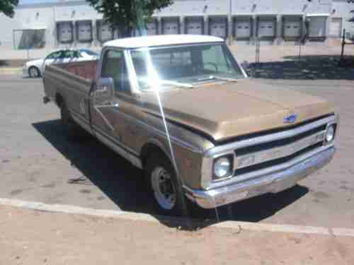 1969 CHEVY TRUCK CUSTOM CAB 20 * RUNS DRIVES AND STOPS * RUNS GOOD ENGINE SOUNDS GOOD * AC CAB ( NOT HOOKED UP ) * AUTOMATIC TRANSMISSION * HAS MINOR RUST IN FLOOR BOARDS * GOOD WORK TRUCK OR PROJECT TRUCK * 8 LUG WHEELS * 3/4 TON * PLEASE ASK ANY ???s BEFORE BIDDING IF NOT SURE * WINNER TO PAY 500 DEPOSIT WITHIN 24 HOURS AFTER AUCTION ENDS * BALANCE TO BE PAID WITHIN 7 DAYS OF AUCTION ENDING *