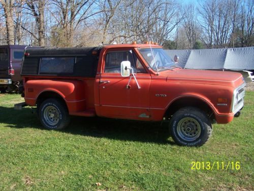 1970 chevrolet 4WD stepside 350 manual trans recent new engine trans and transfer case rebuilt new brakes hoses radiator water pump alternator shocks.all done the same time not more than 12 or 15 k ago.runs and drives great.I have front bumper it was removed for some measurements for another truck.