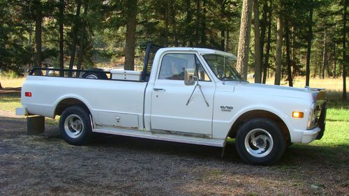Nice old 1970 Chevrolet C10 truck long box. 350 manual 1/2 Ton tranny. Has been well maintained throughout its life. 12986 miles on it currently. Fun to drive, it turns heads, good running rig, low gear. Not mint but could be with little effort. Have extra brand new replacement tool box pannel. Easy start, and added a funny horn toggle for Ruggga! horn. We are always interested in trades. 406-822-0034