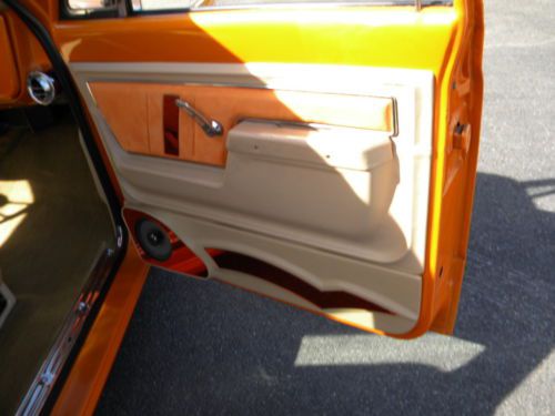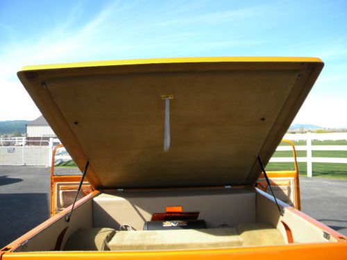 Interior: The interior is very nice and comfortable. Leather with suede inserts tinted orange. Power windows, tilt, with billet wheel leather wrapped, power brakes, power steering, factory tach that works, Custom CD/DVD player with touch screen multiple speakers that sounds awesome. Inside cab and dash same color as the outside of the truck. The truck came with factory AC, but no AC or heater currently. Auto Meter temp and fuel gauge under dash. Stock fuel and temp are disconnected. Bed is custom and carpeted with piston lift bed top.
