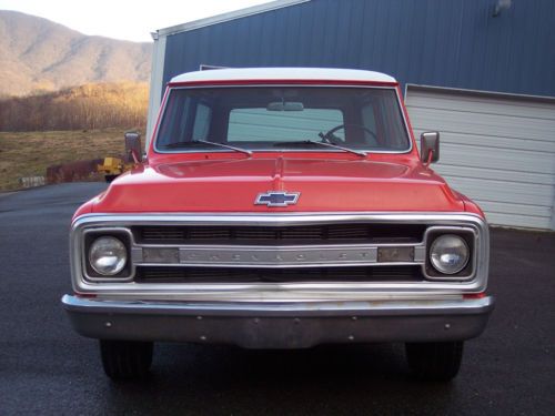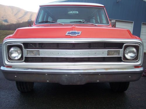 Just in time for Christmas!! 1970 Suburban showing approx.68,642 miles.(from the condition of this suburban these could be actual but I am not selling as they are) I have a clear Nebraska title in hand and this is where I purchased it from. This thing starts right up and purrs like a kitten, and is in real good condition with very little visible rust. This would be a quick restoration project for someone with the time. I was going to find a 4wd frame and put this body on it but don't have the time to do this right now so I am going to sell it because I do not want to see something this nice set out in the weather. The front seat back leans back a little when you sit in it (the frame of the seat must be loose), there is some trim in the back as pictured, all the glass is in real good condition, but the weatherstripping needs replaced, the duct work for the big a/c unit that runs along the headliner needs to be replaced(don't know where to find one) or removed, the a/c does work just needs to be charged. Drives down the road great and the transmission shifts as it should. You can call me or e-mail me with ?'s 828964thirtyfourtwelve. Thanks for looking and bidding, and please if you don't have the cabbage don't waste my time.
