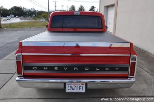 1971 Chevrolet C10 SWB. This is a very clean example of a SWB C10 and a great driving truck! It has the more popular 67-68 front grille assembly and hood. It is powered by a rebuilt 350 small block and a 700R4 3 speed overdrive transmission. A ton of new accessories are hanging on the rebuilt 350 including, power steering unit, 100 amp alternator, mini starter, chrome valve covers, chrome air cleaner, GM fuel pump, Holley carburetor, and Accel electronic ignition. New Hooker headers are connected to a new Flowmaster exhaust that sounds great! The exterior is very nice and has new chrome bumpers and moldings along with new marker lights and a new windshield. The two-tone paint is in great shape and looks amazing! Stance is supplied by a McGaughy’s lowering suspension consisting of spindles, springs, and shocks and a set of staggered Boss 338's in a 18-20'' combo with new rubber. The tonneau cover is new and lifts up with ease from the gas shocks. The inside of the bed has been sprayed professionally by Rhino Linings and looks very consistent. The interior is also fresh with a very nice No Limit gauge kit that uses a full set of Auto Meter gauges. It has power windows and door locks installed along with a very nice sounding audio system that will connect to your iPhone or any USB connecting products for infinite choices in music. The interior is very nice with a seat that is red outer with a red and black hounds-tooth center and custom door panels and center floor console. The use of billet accessories tops off the interior that is lit very well by an aftermarket LED dome light. Everything on this truck seems to have been touched and upgraded in some fashion. It has all the options which are AC, power steering, power disc brakes, power windows, power locks and tilt column. All this truck needs is a new owner that is ready to enjoy! We welcome any third party inspections. Give us a call if any further details are desired at 615-207-6279 Brian