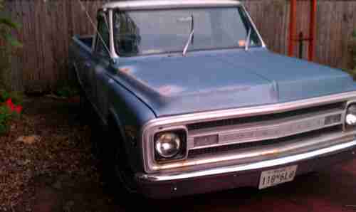 1971 CHEVY C/10 PICK UP TRUCK LIGHT BLUE WITH WHITE CAB TOP. TRUCK RUNS GOOD. HAS CHEVY CRATE MOTOR OUT OF A 1981 Z-28 AND A SAGINAW 4 SPEED TRANSMISSION. NEW EZ WIRE KIT, ALL NEW SUNPRO GAUGES, POWER STEERING, POWER BRAKES, NEW HEAVY DUTY RADIATOR, AND NEW GAS TANK. DENT ON RIGHT SIDE OF BED. PURCHASING TRUCK AS IS. PICK UP ONLY (NO SHIPPING) PAYPAL ACCEPTED. FIVE HUNDRED DOLLAR DEPOSIT AT END OF AUCTION.