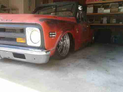 1972 bagged c10 new drive train 604 crate motor with 500 hp rebuilt tranny new drive shaft 373 gears all rebuilt rear end. new tires 235/35/20 on boyde rims four wheel disc breaks power steering and breaks. gt grant wheel and have orig wheel. one tank two compressers 5 switches. new radio old school style with usb and cd new headliner bumper also have orig bumper. new mirrors lights custom iron cross break lights lots of time and money invested. race car radiator double core. new optima red top battery. new door skins also have extra ones new mirrors...boxed frame c notched new shocks. engine has less then 100 miles on it shorty headers borla mufflers. all new....