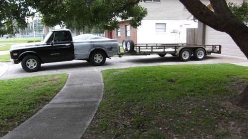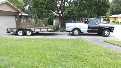A lot of time and money went into this truck. I had to put it together as the result of a divorce, that is the reason it's not painted completely. The driveline and brakes is completely rebuilt for the exception of the new GM 350 High Performance Crate Engine. The Turbo-Hydromatic 350 Transmission is rebuilt also. New BFG All-Terrain Tires, Electric Stewart Warner gauges, New interior with Electric Bucket Seats, Tilt Steering Column, Painless Wiring kit, Power Windows Power and Door Locks, Removable Grant Steering Wheel and kill switch for security, Air Conditioning, AM/FM CD Player. The paint is PPG DBC basecoat/ clearcoat It's a dependable vehicle that gets a lot of compliments even with the primer. Have all receipts for the parts purchased including the engine from GM. The trailer can go with it if you like. It's a 16' double axle trailer with brakes, LED Lights, Warn 3500 winch mounted on trailer and new wood 3 years ago, and a Removable Wheel on tongue jack. I've hauled everything from a Jeep Cherokee to yard waste. The winch is a great time saver for hauling cars or trucks that don't run. It's a great deal for the price.