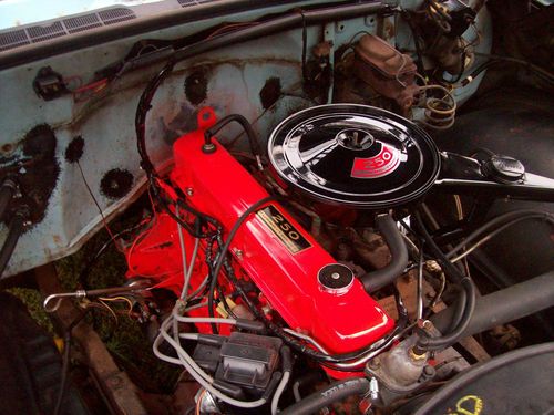 THE INTERIOR IS ORIGINAL EXCEPT THE FRONT SEAT HAS BEEN VERY NICELY REUPHOLSTERED, THE RADIO HAS BEEN UPGRADED TO A CD PLAYER WITH REAR SPEAKERS BE HIND THE SEAT. ENGINE IS ALL ORIGINAL WITH SOME OF THE COMPONENTS LIKE THE VALVE COVER AND AIR CLEANER REPAINTED WITH NEW DECALS JUST LIKE THE ORIGINALS THAT WERE ON IT. NEW DUAL EXHAUST WITH CHROME TIPS THAT SOUNDS GREAT ON THIS 6CYL.