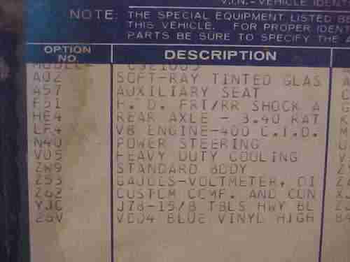 Here we have Chevy Van drives very nice, it's the perfect vehicle it looks very cool, it has a good running 400 small block with a 4bbl quadrajet stock motor original unmolested van Rare to see anymore this clean and in this good of condition it has headers which is perfect to help it breath right and run well which it does, all glass is good windshield has a crack of about 6" long, thats it, no body damage overall pretty straight body lines has 4- B.F. Goodrich A/T Radials & match spare in the back all are like new, 4 aluminum mags, Dual sport mirrors, chrome bumpers nice condition, chrome grill factory upgrade see build sheet, chrome cowl, chrome sliding door track cover,