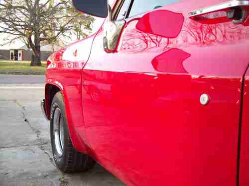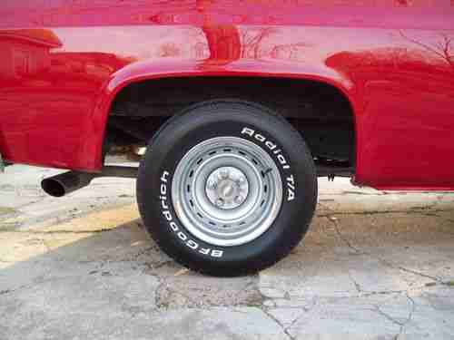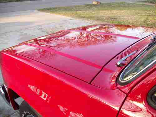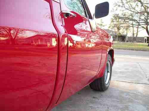 The Paint Job is very nice, and it is painted back to its Original Red, so there isnt any jambing or chipping issues. The Paint is completely Wet Sanded and Buffed, so it is very deep and a Mirror Finish, which gives the truck an extra clean appearance. It has been driven since painted less than a year ago, but there are only a few really small chips, so the paint still looks brand new. The truck is Lowered 2in in the front, and 4in in the rear, really sits nice on the Original Rally wheels. The Lowering did not affect the driving of the truck in anyway, but it looks so much better.