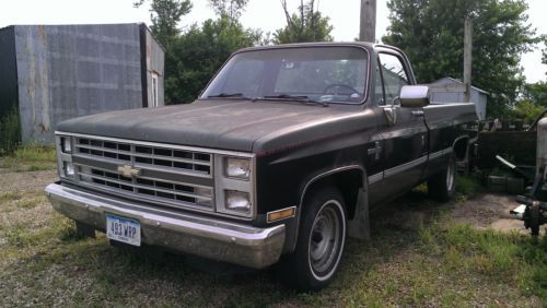 Up for auction is this 1986 C10 (RWD 1/2 ton). It is a regular cab, long box. It is in running and driving condition, and has new front brakes. The engine is a 350 with the Edelbrock Performer EPS Intake, Holley carburetor and a chrome 14" Holley air cleaner. The truck comes with a full size spare rim and tire, second dash and a windshield (the current one is cracked).