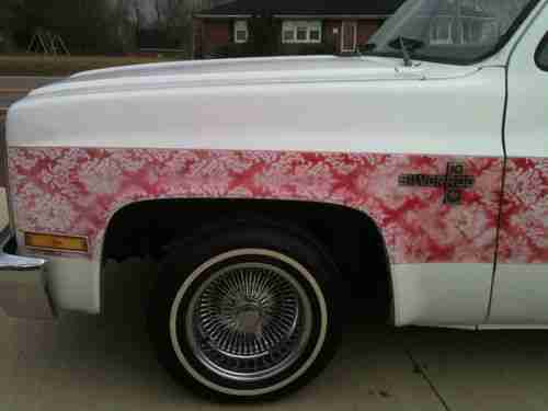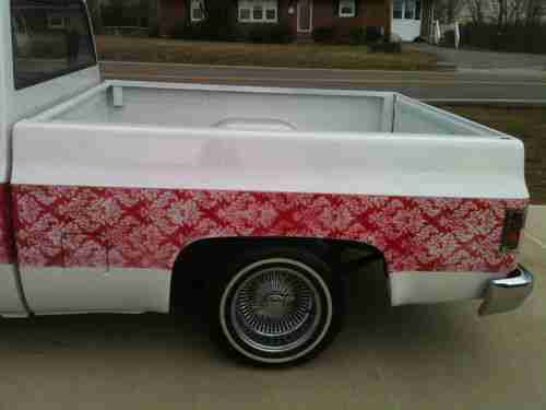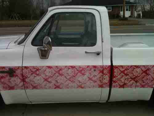 1986 chevy truck runs good no smoke ,no pecks,no knocks,no leaks has 305 engine has tag and phone number where it was rebuilt in danville ky,has automatic trans that shifts good and smooth,has new idler arm ,new brakes ,new calipers ,new brake lines and new shocks all the way around ,truck has been lowered with shorter springs in front and rear end moved above springs in rear ,so it still has a smooth ride,all gauges work ,heater works good has newer paint but looks like amateur did it ,you can see some of the body work if you look close,and it has knicks and scratches , it looks good 10 feet away ,also has new battery , also has 14 inch 100 spoke dayton wheels ,has dual exhaust that sounds decent back to almost rear end ,you can drive any where ,has clear ky title in my name ,title is a rebuild .i just transfered it this week so title might not be back when it sales ,but i will mail title to buyer the day it comes in , i know opinions vary so look at pictures and ask questions ,i will answer truthful to the best of my knowledge ,also for sale or trade locally thanks mitchell
