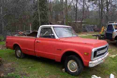 70' was purchased as a parts truck with intentions of using the bed on the 69', & front cap on the 72'. The bed floor is no count, but the rear fenders & tailgate are useable, with a couple minor dings. The front cap & hood are in good shape. There's been some parts taken from this truck already, from the inside, and some of the pass side rocker and firewall has been cut out for another project, but there is still some useable stuff here. It still has orig eng/trans, 6cyl w/ 3 spd man. This truck still has all its glass.