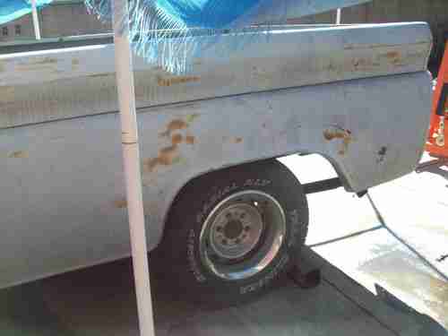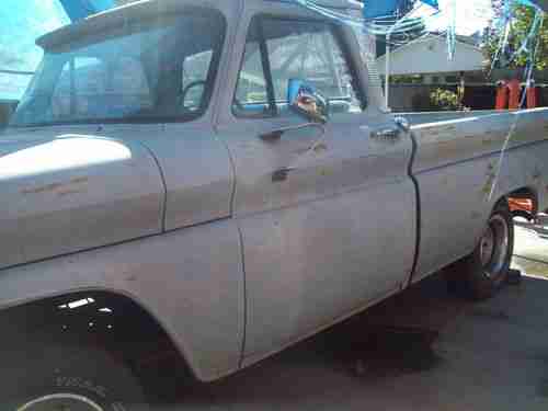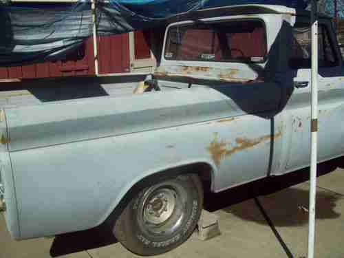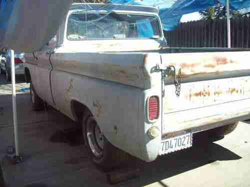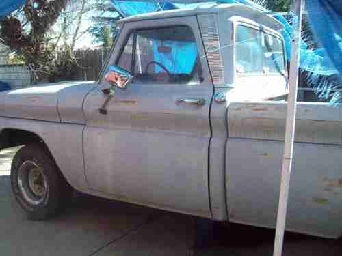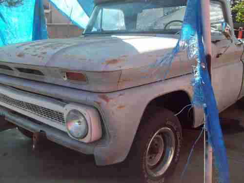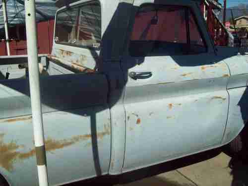 here i have a nice rare big window shortbed truck body is in good condition, has some rust on left side floor board the previous owner put apiece of aluminum over hole , all front parts are there have bumper needs to be redone frame is great, have a poresowerglide core that goes with truck a radiator, some headers i also have a 327 engine complete that goes to but needs rebuilding has edlebrock mani holley carb was running two years ago but left side piston lost compression ... good parts to rebuild cores,,,,,,,,,,,,, THIS A 65 C10 BIG WINDOW GOOD TRUCK TO RESTORE BODY IS NICE THE WOOD IS IN BED HAS SOME RALLEY RIMS TIRES R GOOD ,,THX BEN 626 221 8136