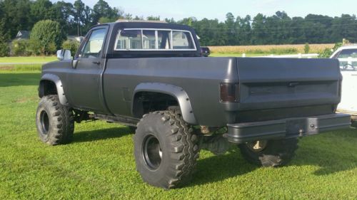 1983 k20 9 inches of lift.39.5 x 15 x16.5 super swampers with about 1/4 tread left. It has a 350 sbc engine with a Manual transmission w/ super low first gear. Locking hubs.