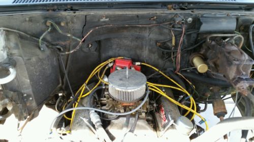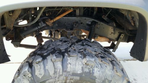 Front drive shaft needs work. Would make a perfect hunting or mud truck. Floor and front bumper have been rhino lined. Needs valve cover and header gaskets. Sold as is. Please ask questions. I'll take more pics if requested.Truck is solid. Only 1 spot of rust on inside of front fender from years of mud collecting there. Bushwacker fender flares. Tires rub a little on hard turns. Going up 1 hole on shackles should fix that. |