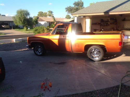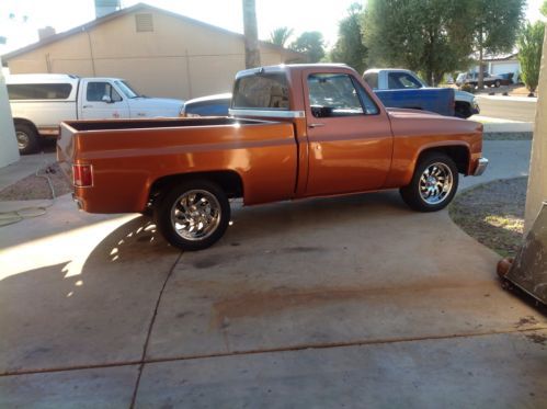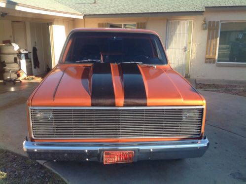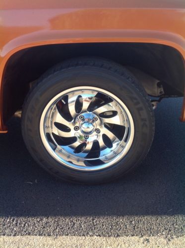 Create chevy 350, all Mallory ignition system,an plug wires, Edelbrock carb an intake. Edelbrock ceramic coated headers an full dual exhaust with flow master mufflers. Edelbrock mild street cam. Motor only has 3585 miles on it not a rebuild. The transmission is a 700r4. Has a b&m performance shift kit. Also a b&m ratcheting floor shifter. The transmission also only has 3585 miles on it but it is a rebuilt trans. Drive line has been upgraded with spicer u.joints. Rear end has newer ring an pinion. Rear leaf springs have brand new bushings. The rear end also has ssbc rear disk brake conversion.also only 3585 miles on it. Front suspension is all chassis tech,tubular upper and lower control arms,aluminum sway bar,lowering springs as we'll not cut springs,all bushings front and rear have 3585 miles on them. The front brake rotors are cross drilled. The wheels are 18 inch, tire are about 50% The fuel system is new as well,new gas tank,pump an filter. The interior is new,custom two tone orange And black,all the black is ostrich material very nicely done. Billet aluminum inserts threw out. All the gauges were brand new when the motor an trans went into the truck,so 3585 miles is what this truck actually has on it!! The windshield is brand new. All the rubber seals are new too. Now the paint and body...yes the truck is pretty and shinny.but this is the only complaint I have about this truck is the paint and body work. The paint has a couple chips one by the upper passenger side of the tail gate an one by the top of The driverside door. The prep work was not done the best it could have been there for in some areas it shows,in some areas the paint just doesn't lay flat little wavy.some of the panels don't line up as well as they should.the paint place was going out of business an they just put it together an shipped it out the door an no one to answer to...don't get me wrong the truck is beautiful but for time an money that went into motor and drive train,the paint and body work just doesn't add up. The truck starts first time and hauls ass,i just want to start another project. |