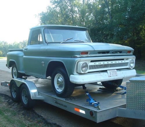 1964 CHEVROLET C10 SWB STEPSIDE PICKUP TRUCK, 6 CYLINDER ENGINE WITH 3 SPEED MANUAL TRANSMISSION, THIS WAS GRANDPAWS PRIDE AND JOY, THIS WAS HIS DAILY DRIVER TO AND FROM WORK FOR MANY YEARS, HE EVENTUALLY HAD TO STOP DRIVING SO THE TRUCK HAS JUST BEEN SITTING IN THE GARAGE COLLECTING DUST, WE WANT THIS TRUCK TO GO TO A GOOD HOME, THIS TRUCK IS IN ORIGINAL CONDITION AND NOT RESTORED THEREFORE IT IS NOT PERFECT IE.. HAS OLDER PAINT JOB/PATINA LOOK THAT IS FINE FOR A DRIVER BUT WILL NOT WIN ANY BEST PAINT AWARDS, INTERIOR IS ORIGINAL, RECENTLY HAD A NEW HOUNDSTOOTH SEATCOVER INSTALLED THAT LOOKS GREAT, ORIGINAL WHEELS AND HUBCAPS, WINDSHIELD IS CRACKED, EXCELLENT FATHER/SON/DAUGHTER FIXER-UPPER TO ENJOY AS IS OR TAKE TO THE NEXT LEVEL, BIDDERS WITH ZERO/NEGATIVE FEEDBACK MUST CONTACT ME BEFORE BIDDING OR I WILL CANCEL YOUR BID/BIDS, FEEL FREE TO CONTACT PAUL AT 901-219-9569 WITH ANY QUESTIONS, SOLD IN AS IS CONDITION, I ALSO RESERVE THE RIGHT TO END THIS AUCTION EARLY IF NEEDED AS THERE IS A HUGE CARSHOW AT THE TUNICA CASINOS THIS WEEKEND AND IF I GET A CHANCE I WILL BE ATTENDING WITH THIS TRUCK , THANKS FOR LOOKING!