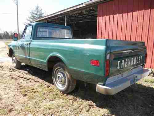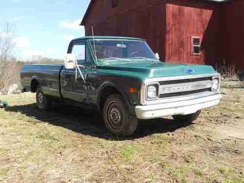 This is a 1969 chevy pickup truck that my late uncle bought new . It has the original paint on it and is 98 percent rust free . It has always been stored inside and has not been ran in 15 years. It is a half ton, 307 engine and 3 speed on the tree. The rocker panels were damaged when it was driven over a snow pile. One was replaced and a nos panel goes with the truck for the other side . The truck has no options other than hd rear springs . The engine has not been started . The brakes are in working condition . I would prefer someone to look at it before bidding.I will answer any questions.937-725-5986 located near Clarksville Ohio 45113 Clinton County