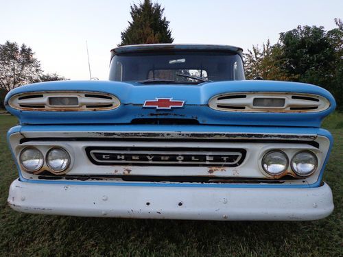 Up for auction is this beautiful all original 1961 Chevrolet Apache 10 pickup truck. A true barn find & she is in great shape!. These trucks are very rare and getting harder and harder to come by, especially in this condition. It is a really clean straight truck without a bunch of dents and dings like many of these old farm trucks have. Also, it has a very clean interior with no rips or tears in the seat. The paint still takes wax and shines up well, as you can see in the photos. I don't see any body work in this truck and only a couple minor rust spots. One in the passenger door about the size of a quarter, and a small section just under the bowtie on the hood.(see pics)
