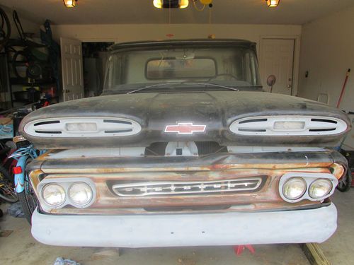 1961 Chevy C-10 truck. Was an old farm truck. The odometer only has 5 digits, so exact mileage is unknown. The engine does run, but the gas tank has rust hole in it and there is some rust on the truck. It has new master cylinder, front brakes, spark plug and wires and the front wheel cylinders have been rebuilt.