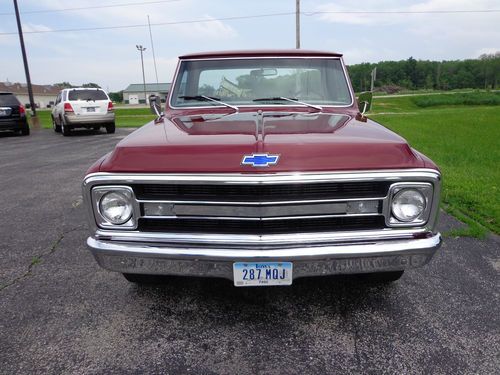 You are bidding on a 1970 Chevy Custom Pickup Truck. I am listing this for a friend. This truck comes with a 350 C.I. / 330 Horse Power Crate Motor, GM Serpentine Kit, Chevrolet Aluminum Intake, Edelbrock Carb, 3 Speed Automatic 350 Turbo, All New Exterior Trim, Glass, and Weather Stripping, comes with Original Bumpers, New Grill Shell, New Side Marker Lights and Tail Lights, Newer Wheels and Tires with Very Good Tread(See Pictures), New Body Gaskets and Hardware. Also comes with a professionally done paint job 3 years and 200 miles ago. Paint does not have any cracks or chips. All receipts to all of the new parts come with the truck!