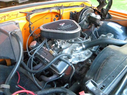 Running Gear: Original 350 rebuilt stock with the exception of Eldebrock aluminum intake and carb along with valve covers and air cleaner. Power steering. The transmission is a rebuilt TH400 and works as it should. The rear end is stock.
