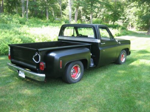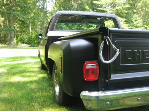 • 1977 CHEVROLET SHORTBED STEPSIDE • ORIGINAL "HEAVY HALF" TRUCK WITH ALL 454 SUSPENSION • TRUCK IS ALL NEW • BRAND NEW CRATE 350 MOTOR GM pn 10067353 • REBUILT QUADRAJET CARB, REBUILT & CURVED HEI IGNITION • NEW ENGINE DETAIL: WIRES, LOOMS, HARDWARE • REBUILT TURBO 400 TRANSMISSION • 12 BOLT DIFFERENTIAL 3.73 GEAR RATIO • NOS HOOD AND INNER FENDERS • NOS HEADLIGHT BEZELS & TAILIGHTS (IN THE BOX) • NEW WINDSHIELD & BACK GLASS • NEW DOOR WEATHERSTRIP, DOOR GLASS RUBBER • NEW EXHAUST: MANIFOLDS TO REAR BUMPER • NEW DRIVESHAFT, FRONT YOKE & UNIVERSALS • NEW BED WOOD WITH ALL STAINLESS HARDWARE • NEW BRAKES FRONT AND REAR, NEW MASTER CYLINDER, AND COMBINATION VALVE • NEW MODINE 454 RADIATOR • NEW BATTERY, HOSES, & BELTS • NEW TIRES: 275/70-15(rear) and 255/70-15(front) • COMPLETE FRONT ALIGNMENT ALL DONE • ECE LOWERING KIT FRONT AND REAR INCLUDES: FRONT DROP SPINDLES, SHOCKS, SPRINGS, REAR SHOCKS, C SECTION KIT, AND SHOCK EXTENSIONS • RESTORED DOOR PANELS AND NEW BOTTOM SEAT COVER • PAINTED IN SEM HOT ROD BLACK (PAINT NOT PRIMER) • FLOOR IS TOPCOATED WITH LINEX MATERIAL • TRUCK IS CURRENTLY REGISTERED IN CT • I HAVE THE TITLE • DRIVES PERFECT • HANDLES LIKE A SLOT CAR • TAKE IT ANYWHERE • 2014 NSRA SAFETY 23 INSPECTION COMPLETED 6/6/14 IN YORK PA Additional transparency information: The Speedometer is operational, odometer does not work. I will include an additional speedometer unit with working odometer. Radio is currently not wired, will include original speakers and door panels, which could be re-installed. Turn signal canceling unit works intermittently. Grille has a small crack on the top rib. Truck is available for inspection and/or test drive at any time during this auction, in New London, CT. For any further information, please call me at 860-705-1180 The Fine Print; Truck is for sale locally and I reserve the right to end the auction could be ended at anytime. The foregoing motor vehicle is conveyed "as is, where is" without warranty of any kind, or representation as to fitness or use. Purchaser represents that it has fully examined said motor vehicle, is satisfied with its condition, and is not relying on any representations made by seller. |