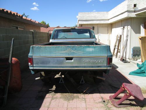 Truck was orig. used to haul custom ski boat and was customized in California...I bought it in 85' and went thru the drive train and drove it for 5 years as a cruizer...married and child on the way in 91 I parked her with every intention to restore her again. All these years later and she still sits outside my house. Sold the engine and tranny...the interior went away...but I do have all the parts except for that...I'll even throw in a set of alum. wheels I was going to use...the truck is straight no rust but needs to be gone thru to bring it back to it's orig glory...I'm ready to sell her and let someone else enjoy this great old truck...for pick up in Chandler Arizona...I will help you load it up but you need to provide transportation if you live out of state or out of town.