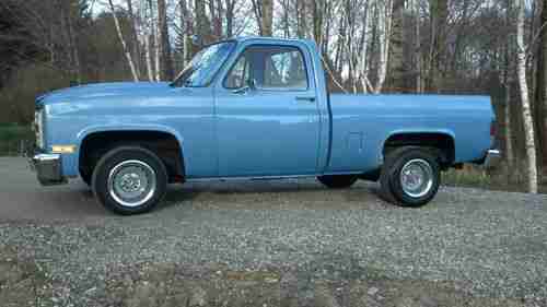 Up for auction is a 1 Owner 1983 Chevy Short Bed Pickup. This truck was completely taken apart glass interior ect. and now sports a brand new paint job in its original Hawaiian blue color. truck is equipped with a 454 BB engine and an automatic transmission.