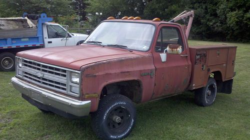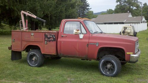 1985 Chevy 1500 1/2 Ton Utility Body 4x4 Truck With Crane Hoist No Reserve on 2040-cars
