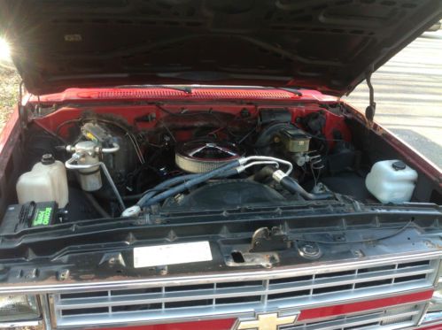Very clean 1986 Chevrolet K10 4x4. New brakes and lines, new gas tank, new rear shocks, new chrome bezels in grill, Complete replacement/refresh of full interior to like new state. New Warn lockout hubs, new period correct 4x4 rear center caps, near new tires. Stock 305 engine with new Holley 570 4 barrel carb. New Holley air cleaner, A/C newly converted to r134a blows cold. Has a small quarter size rust spot in driver cab corner as typical for the year no other rust issues noted. Needs new body side trim. The paint buffs out good and looks great from 15 feet. If I keep it, it will get a repaint, cab corner fixed. I don't have to sell it but want to focus on another project. I have owed this truck for 2 years and drive it frequently. Runs good with no issues. This is a 28 year old truck and I have spent a lot of money and time making sure that it is safe, clean an runs well but it is 28 years old and the buyer should be aware that there is no warranty given or implied. Available for local pickup. Shipping is not included in sale of vehicle and is the responsibility of the buyer.