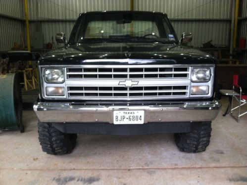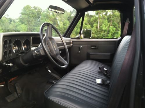 1986 Chevrolet SWB K10. 73,000 original miles factory 350 four bolt main, 700R four speed auto trans, zero rust, no dents or bondo. Inside of the truck bed is with out dents only scratches. Outside of the truck has one dime size dent. Original equipment with the exception of the following: Has been repainted original color, 6" lift, flowmaster exhaust, Alpine stereo, lengthen driveshafts, OEM wheels were widened to 10" with 4" back spacing by Stocton Wheel, Rear 2" wheel spacers, restored OEM wheel centers, 33" 14:00 Interco Boggers, Seat has been recovered to original charcoal gray material and pattern. Evertything on the truck works as it should gauges, lights etc. Engine and transmission are factory and have all factory components still installed as original to the truck when new. Door weather-stripping has been replaced.The truck was bought and spent its life in north of Sacramento California so all chrome is in great shape and I have replaced the tail and side marker lights with new lenses and the instrument cluster lens has been replaced as well. I purchased the truck approximately a year ago. The truck is for sale locally so I reserve the right to end the auction early. Inspections are welcome and can be scheduled Mon-Fri after 5:00pm, anytime Sat and between 1:00pm and 5pm Sunday.