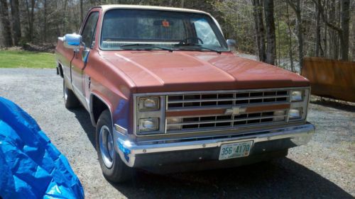 1986 Chevy C10, Silverado, 2wd, long bed with 305 V8, 350 turbo automatic trans. This truck came from North Carolina and is titled from there. AC, PB, PW, PDL, duel fuel tanks, and cruise. The AC needs to be recharged, and the cruise is not working. I recently have installed new window motors, window/vent window seals, new oil and filter, duel exhaust all the way back with cherry bombs (sounds nice), brake pads, shoes, and wheel cylinders. The drums still had the clips that hold them on from the factory. Truck is very straight & clean. Paint has been touched up, but some remains factory. Headliner has a couple of small areas starting to sag, cheap to replace if so inclined, otherwise interior is nice. The motor has headers, intake, and carb which gives the 305 much needed boost in power. This is not a show truck, but a really nice looking, riding and driving truck for chores or daily driving, and you can work on it yourself without a computer. I also have the fluid and filter kit to service the transmission, and will try to get to it before sale, but included if not. Truck is just a pleasure to drive and gets a lot of attention. Very low miles, and no winters, very, very clean. No disappointments |