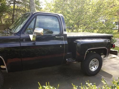 I have owned this truck for 20 years, it was originally a Black 6' Fleetside truck. I purchased the truck with 85000 and I'm the third owner. Truck is fully loaded, I had the cruise control disconnected in 1996. Passenger side window goes up and down very slow. Truck had a new engine installed at 280000 miles and was repainted in 2005, I also had the truck repainted in 5/1997. Some of the photos are from the truck in the autobody shop in 2005. Truck currently has 280744 miles and counting since I'm still using it for errands. The rear end is a posi unit and was rebuilt by GM along with the transmission at the beginning of 2004. In 2005, I changed beds and installed a stepside bed and changed the color of the truck from Black to Navy Blue. It is due for another paint job to address the rust at the front of the cab, some spot rust at the back of the cab, spot bubbles around the windshield, and the bottom of the rear fenders.