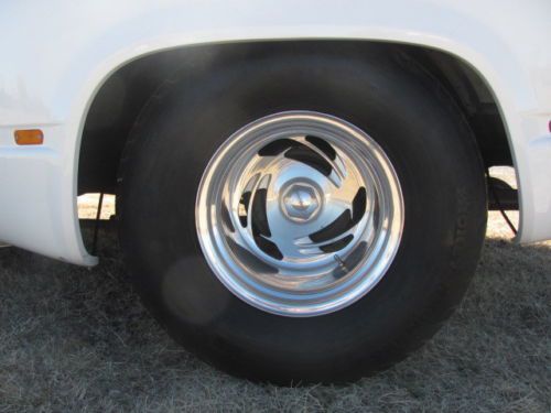 1988 Custom Show Truck "Phantom Dually" (Standard Axle length, Drives and Rides Excellent) This Truck Can't be fully appreciated until to you See it in Person and Drive It. There may be some confusion on what a "Phantom Dually" Is. This is a 1988 (First Year Body Style) 1/2 Ton 1500 Series Pickup, Not a 3/4 Ton Nor a 1 Ton. It has a Dually Bed with a 14 Bolt Rear End (Completely Rebuilt) From a 1990 SS 454 Pick Up. It Has Single 15" Wide Rear Wheels. This All Means The Truck Drives Like a Car, The Suspension and Ride is NOT HARSH OR ROUGH IN ANY WAY, Drive it anywhere in comfort. This is a Custom Truck Built for Daily Use/Showing/Enjoying and Was Not a Factory Option Offered By GM. This Truck has approximately 2,500 Miles since completion (truck shows 88k miles, But only 2500 miles since restoration, just want to be clear) 502/517 Big Block Estimated 500HP Plus Conservatively SUPER RELIABLE DRIVE ANYWHERE NO WORRIES 700R4 Transmission Shifts Perfect 373 14 Bolt Posi-Trac Rear End COLD A/C DOES NOT OVERHEAT IN 100 DEGREE WEATHER WHILE IDILING 32 Gallon Fuel Cell 11 mpg at 75 (Built to be driven and used) Near Perfect Interior Mostly Stock Custom Autometer 10,000 RPM Tach (Sport Comp Silver) Custom Autometer Oil and Temp Gages Tilt Power Steering Cruise Control Tinted Windows Custom Pioneer Stereo/CD Steel Cowl Hood Custom Rear Roll Pan and Front Bumper Custom Bed Cover Ceramic Coated Headers Electric Fuel Pump MSD Ignition System Optima Battery Holley Street Avenger with Electric Choke (Starts First Time Every Time) Budnik Custom Wheels Rear 15x15 With 31x18R Mickey Thompson Sportsman SR Radials (Super Smooth on the Highway) Like New, 15x8 Front 215x70x15 Tires Drop Spindles Aluminum Drive Shaft This is a One of a Kind Hardly ever seen Show Truck, built by a Gentleman in Kansas. Meticulous is an Under Statement. This Truck was OVER built with only the best parts. It has less than 2500 miles since completion, This truck will get every one's attention. It's not only Reliable But Really Fast and Powerful. The Truck is always garaged and covered, It rides excellent you will be impressed and surprised. This truck Needs Nothing (The only thing that doesn't work is the power lock on the driver side, everything else works as it should). This is truly an Impressive vehicle, Drive it to Work, Show's, Track where ever you desire. Please ask questions, I will answer them the best I can. Thanks for your time and Bids, The Winning Bidder will be One Happy Person. Darren Text, Email or Call 918-521-4311 |
