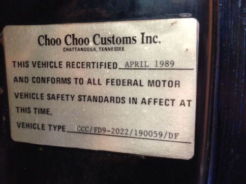 As with all unique vehicles, fakes are rampant in the hobby. The only positive verification of a Choo Choo Customs vehicle is the recertification tag in the rear portion of the driver door jam. The truck in this auction was modified and recertified in April, 1989, per the door tag. A photo of the recertification tag is prominently displayed in the main photo body.