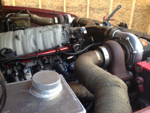 I built this truck for me to enjoy on the street. Gets tons of attention pretty much anywhere you go. This truck was originally sold new about 10 miles away in Cleburne Texas. Body wise is just about all original. I sealed the flavor in using Satin Clear over the stock worn out paint. Extremely Fast truck even on low boost 9-11PSI. I personally tuned the truck using HPTuners, 3 Bar Custom OS. It is currently tuned to around 15psi, which even at low boost it just blows off the et streets easily under 60mph. I would estimate around 600-700rwhp on the current boost level at 11psi on e85. Timing is aggressive on E85 to achieve the power its currently producing. The old Twin Turbo 4.8 combo cranked out 504rwhp on 12psi in 2nd gear thru the TH350. The most frequent asked question is "Why no intercooler". It is currently on E85 which aid's dramatically but that is not my main reason why. I built this combo to have virtually ZERO lag in boost. With the very short Y-Pipe from the turbo's spool time is almost instant and feels incredible. Hardly any turbo lag. IAT's are under control and I have personally never seen it go above 190 after a FULL PULL. Truck runs and drives very, very nice. It is tuned on E85 which I recommend keeping her on E85. It’s a blast to cruise this nasty little sleeper and bust pretty much whatever pulls up next to it on the highway. It does have a HOT heater but does not have A/C. Glass is tinted nicely, Roll up windows work great!