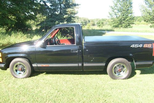 This is a 1990 Chevrolet SS 454 truck I'm selling for a friend. This truck was only made for four years.Runs Great,Drive anywhere. It is a true SS truck and not a clone. There is some scratches in the paint but the truck is 23 years old and it is very respectable.All original paint except hood and tailgate.Hood had chips,tail gate had scratches. Interior is a 9 out of 10.It is a blast to drive and it is a head turner. You can call keven after 5 pm central time. (920)536-1350 or message me and i will relay the message.Buyer to pay $500.00 through pay pal immediately,Balance due in 7 days.Pick up only.or have carrier lined up and will assist with loading.Or can be viewed 20 miles north east of Green Bay Wisconsin On hwy 54.No trades,Will not end auction early.No reserve,Thanks for the interest. Miles- 63,845 454 engine Turbo 400 trans 14 bolt rear end with a posi traction A/C Power windows Power locks Cruise Rear tinted sliding window Has 2" lowering kit in it (also have original suspension ) Rear roll pan These are original rims tires are 75% tread left. everything works |