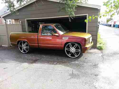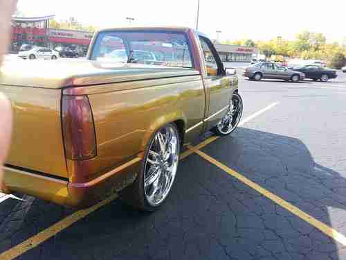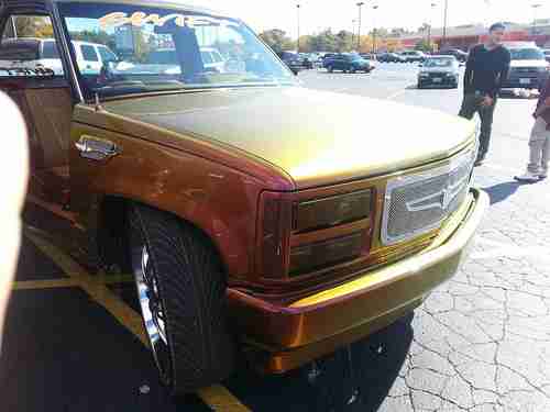 1992 custom silverado with chameleon paint. has an overhauled 350 tpi motor out of a 1992 camaro with the trans to match. truck is dropped and ready for airbags if desired. frame was notched and boxed and a arms have the plates welded for the bags.front suspension was pretty much all done over.all paint and body work was done about 2 years ago. interior is all fiber glass and painted to match.seats are real leather.truck is sitting on like new 28" rims and tires. looking to sell but open to some trades of equal value. any questions feel free to call me at 773-331-8478. for more pictures or video just text and ill send you the link.