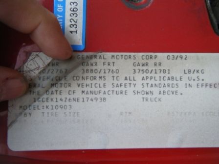 1992 Chevrolet K1500 Silverado Pickup 2-door / For Parts Or Scrap Only / 132363 on 2040-cars