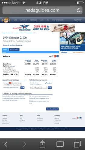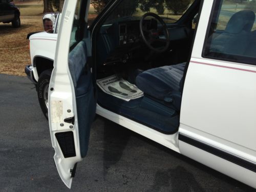up for sale is a super nice extra clean 1994 Chevrolet 1500 extra cab 4wd truck.accident and damage free it is a one owner Winston salem nc truck has the 350 engine and automatic transmission as well as the Silverado package which gives you the power windows,locks,tilt,cruise,and a nice interior with cloth seats and carpet. this truck has the original owners manual as well as the key plates were you can get new keys cut for it as well as the papers were it was bought new in Lexington north Carolina the truck does have a couple small blemishes on the paint they are pictured .on the pass rear cab under the pinstripe there is a place were the paint chipped and has been touched up as well as the rear on the drivers cab were the bed and cab meet that has been touched up as well as normal little rock chips just a few not bad but has been touched up the truck is sitting on a set of Michelin tires has original bilistein gm shocks as well as the original gm bed mat and original gm floormats as for the miles it has only 198k as this is really considered to be good for a 1994 model truck as it has only been driven 9900 miles per year on a average for the miles that is on it I have pictured a copy of the nada for it high retail is 11662.00 this is a way above average truck don't miss this chance to own a nice ole Chevrolet truck as the underneath rockers is rust free no rust on the undercarriage this is a hard to find truck in this caliber for the year model these trucks aren't made anymore like this ecspecially with the good ole 350 engine anyone can work on it without having a electronics and certitied education and not 30-40k dollars I have made a bunch of pictures and more is availabale upon request let the pictures do the talking call chris with questions or to buy it now 336-416-5631 don't miss it I reserve the right to end the auction early as it will be listed locally for sell as well