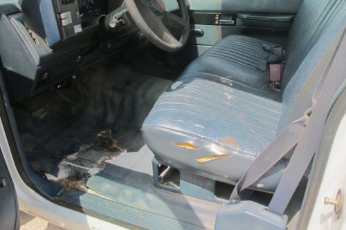 This auction is for a 1994 Chevrolet Pickup. VIN is 1GCEC14HXRE192627. This vehicle was started at the time of listing, the engine did idle rough. Broken driver’s side mirror. Automatic transmission. 5.0L V8 . No AC. Loss of paint. Seats are torn. Floor board mat in poor condition on driver’s side.