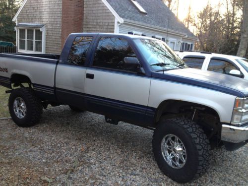 1994 CHEVROLET K1500 NEW 6" LIFT ROUGH COUNTRY 35"TIRES ON 17"FUEL WHEELS KENNWOOD STEREO WITH IPOD HOOKUP B AN M SHIFT FIRM CONTROL SOLID TRUCK DRIVERS CAB CORNER STARTING. HAVE PATCH PANEL DENT ON DRVERS BED SIDE HAVE NEW FACTORY FENDER FLARES TRUCK RUNS AND DRIVES PERFECT I DRIVE IT EVERY DAY MECHANICALLY PERFECT NEED PAINT HAD BIG PLANS BUT BUYING HOUSE HAVE TO SELL CALL IF HAVE ANY QUESTION CASEY 508 364 9401 |