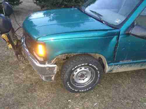 This truck was my daily driver untill the plow hitch dug into the ground and bent the frame. The frame is bent very bad and the truck is not road worthy, however it does still start and drive so it may still work for plowing or for parts. The motor always ran good and the transmission was replaced around 120k. The myer power angle complete plow setup comes with the truck i just bought it used and put it on the truck 2 years ago and it works great. The gear shifter was broken off in the accident but you can change gear by pulling the cable under the column. The frame caught hard on the drivers side corner the windshield is spider webed, the dash is busted up and the muffler fell off in the wreck that from what i could see. If you need any other information about the truck or would like to look at it let me know.