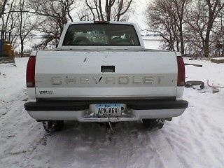 This is a good old Chevy Silverado that is dependable. It starts in subzero weather. Four wheel drive works. The interior is decent, no rips tears cracks. The radio works well. Tires are wore down pretty good but are holding up. Cooper mud tires. Does not smoke. Runs strong. Has a fifth wheel camper hitch I recently put in. I can take that out if you don't want it. Camper may be available too. Has a rubber bed liner. Haven't got the electric trailer brake set up put in. The only issues it has are the doors don't open from the inside, you have to run the window down and use the outside handle. Also, it has a rusted spot on the frame rails where dirt gets trapped and it has rusted. It is going into the shop to get these issues fixed. It has miles but it is tight and drives nice. Asking $2400 OBO. I want a $500 deposit within 48 hours through Pay pal. I want a money order or certified check within 7 days. We can arrange pick up. Bring a photo ID when you come to pick it up. Or use a trucking company from Uship or something. The truck is also for sale locally.