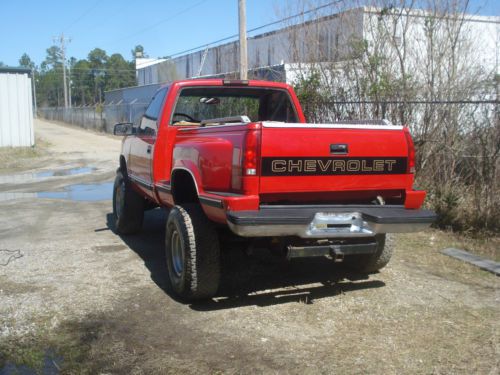 350 vortec original engine was rebuilt into 383 stroker engine does not have many miles on it automatic transmission 3 in body lift 2 in suspension lift in a back powertrain components all work good 35x12.50 R15 tires has power windows and locks (all work) interior is in good shape. seat needs some minor upholstery work done on top of a seat truck needs back window installed also need some body work done on the back behind the bumper it needs a/c compressor installed. heater works. radio was removed. no rust on the body. contact me for more info i can send more pics via email i might consider delivering the truck |