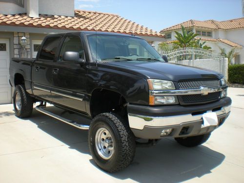 2004 chevrolet crew cab silverado LT 5.3 v8 fab tech lift, dvd ,tvs,great sound system,leather power seats,ac,ps,pb,pw,cc,cd,tow package,I think its got most all options available in that year. 57,838 original miles,slider bed cover,alloy wheels, just spent almost $600. on front end at alignment shop. clean title, looks and runs great, $13,900. Vehicle will not be released until full payment is verified. serious buyers only please. Riverside ca. This ad may be removed at anytime because vehicle is advertised locally ( 9 0 9 )=9 8 6- 5208