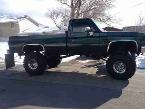 1982 CHEV DREAM TRUCK this sweet big bad 12 in lift that is done right all spring lift 12 shocks 383 stroker with about 60000 miles and is all quality crhome parts big cam and this truck is so clean underneath paint is good hood is just a little faded body is just about perfect new ball joints way cool tail lights this truck is a must see you will not find a cooler truck nice stereo bench seat needs done and a few minor interior parts 15 13.50 39.5 tires it does need tires but most everything is fairly new call 801 529 4437 everything is very nice on this truck