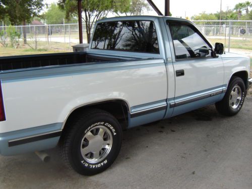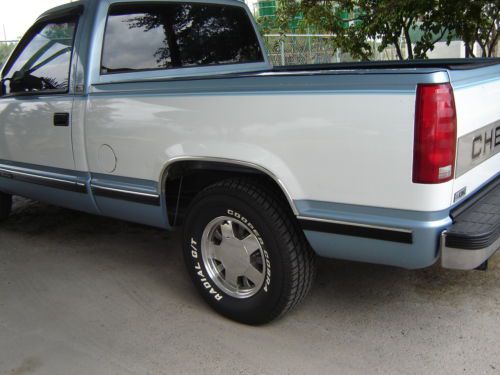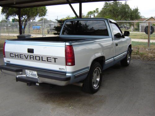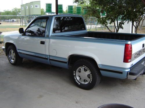 1989 CHEVY C1500 TWO TONE AUTOMATIC 5.7 V8 ENGINE LOW MILES 69,000 (IM STILL USING THE TRUCK, SO EXPECT MORE) TIRES 3 MONTHS OLD, SPORT COOPERS COBRA 255/70/15, SPARE TIRE SAME SIZE. POLISHED RIMS, NO CURB DAMAGE NEW ALARM NEW ALTERNATOR, FAN CLUTCH, FLUSHED RADIATOR TUNE UP LAS MONTH WITH NEW FILTERS AND SPARK PLUGS AND WIRES AWSOME SOUND SYSTEM, 2 MEMPHIS COMPETITION AMPLIFIERS, 2 10" MEMPHIS DOUBLE COIL SUBS, 4 NEW 4X6 SPEAKERS, NEW KENWOOD HEAD UNIT WITH USB CONNECTION AND A OLD SCHOOL KENWOOD EQUILIZER. BRAKES SERVICED TWO MONTHS AGO NEW PLASTICS ON REAR BUMPER, BUMPER HAS NO DINGS OR SCRATCHES BATTERY AND ALTERNATOR 4 MONTHS OLD ALL TRIM IS THERE IN GOOD CONDITION INTERIOR IS GREAT, NO CRACKS ON DASH!! NEW IGNITION KEY RUNS LIKE A SCARED RABBIT TRUCK IS AS IT IS, I DIDNT WENT CRAZY WITH BLACK SPRAY PAINT CAN OVER THE ENGINE OR UNDER FRAME LIKE EVERYBODY ELSE DO, OR GRAB THE HOSE AND GIVE HER THE "SHINE WET LOOK" FOR PICTURES. ORIGINAL CONDITION, NOT BUTCHERED OR MODIFIED BY A CRAZY KID NO RUST, TEXAS TRUCK DRIVES AWSOME HAS PAINT FADING ON ROOF FROM TEXAS SUN, I DIDNT WANT TO PAINT THE TRUCK SO NEW BUYER CAN SEE THE ORIGINAL CONDITION. EXPECT NORMAL ROCK CHIPS-DINGS FROM ROAD, AND NORMAL STUFF FROM BEING A TRUCK. ITS NOT A NEW TRUCK. NO LOW BALLERS, IF YOU WANT A CHEAP YUNK TRUCK FOR THE MONEY PLEASE GO TO YOUR LOCAL CRAIGSLIST POSTING. SCAMMERS STAY AWAY, THIS IS NOT MY FIRST TIME IN THE RODEO. BEFORE YOU HIT ANY BUTTON PLEASE, ASK YOUR WIFE, NEIGHBOR, BOSS, SIGNIFICANT OTHER FOR PERMISSION, TELL YOUR KIDS, DOG, CAT TO STAY AWAY FROM KEYBOARD…. READ MY FEEDBACK BUY IT NOW PRICE!! AND I WILL INCLUDE YOUR CHOICE OF LEER CAMPER OR TONNEAU COVER (SOFT TYPE) THANKS |