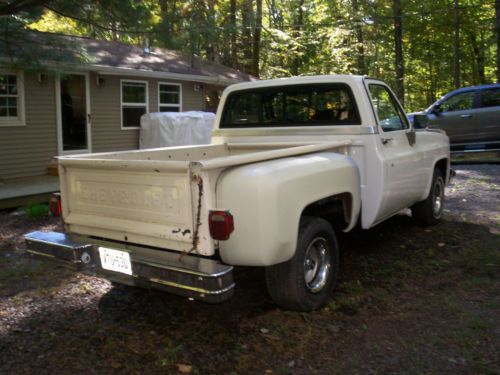 1986 Chevy C1500 2wd stepside pickup, 305 v8, automatic, rust free, very solid truck, clean NJ title, runs & drives, just needs a little finishing, true milage is unknown, title shows 249,560, odometer shows 24,956.0. the cab/ nose has been painted, the frame has been painted, it has the Blazer/Suburban style grill installed, i have new rear shocks, new door panels, arm rests, door pulls, dash cap, weather stripping, gas door, bed mounting bolts, it all goes w/ the truck. it needs the bed mounted properly,( it just has a cpl bolts in it so i could get it home), a proper exhaust,( it has a .45 elbow off the cat) & the interior put back together. the rear fenders are primed, the bed is tan. i also have a set of 18" rims w/ new tires available at an extra $800.00 (tires alone cost over $900.00) you can have a nice truck with minimal work, for about the price of the paint job! please mesg. me with any questions, i'm happy to answer the best i can, the community is hassling me for a unregistered vehicle, so its gotta go!